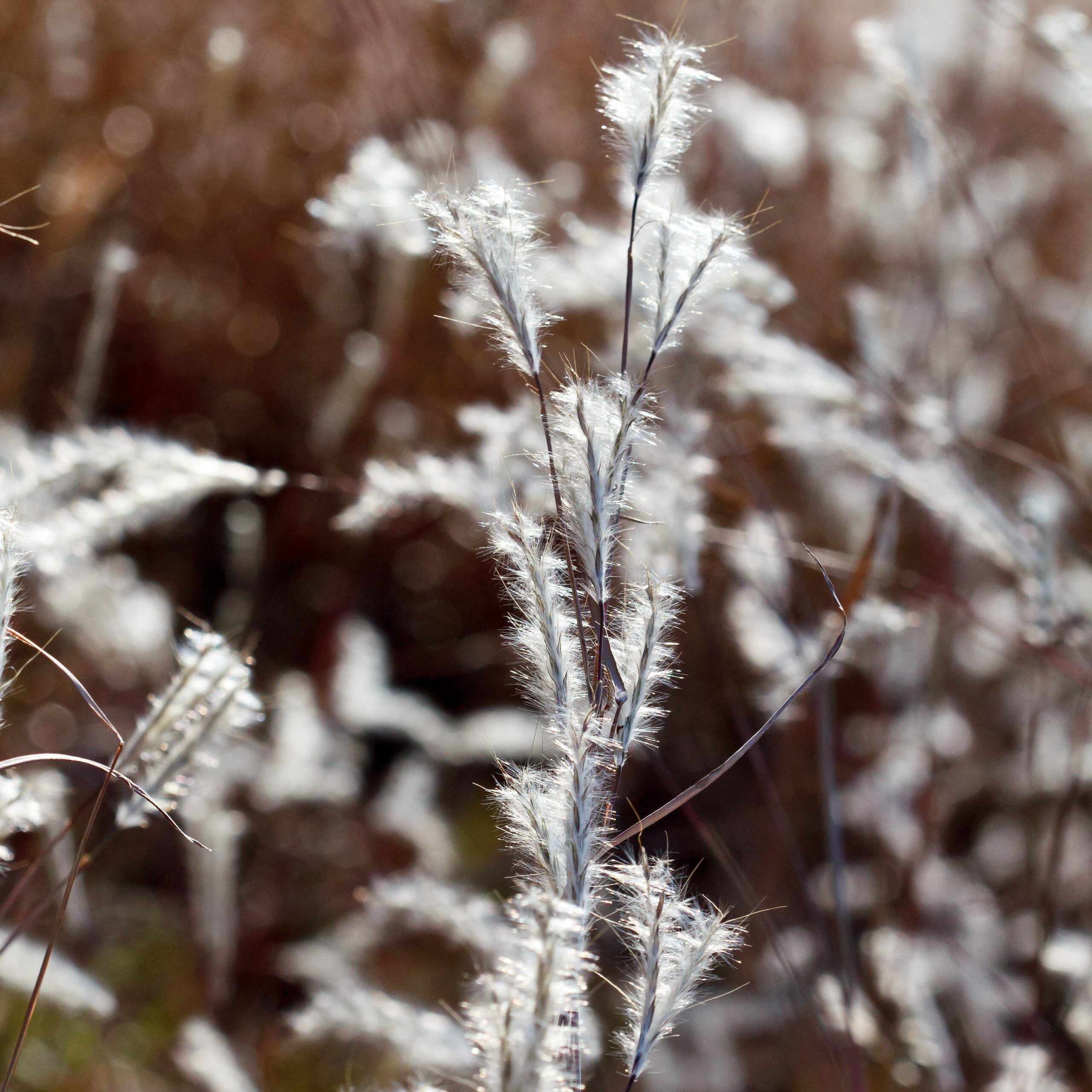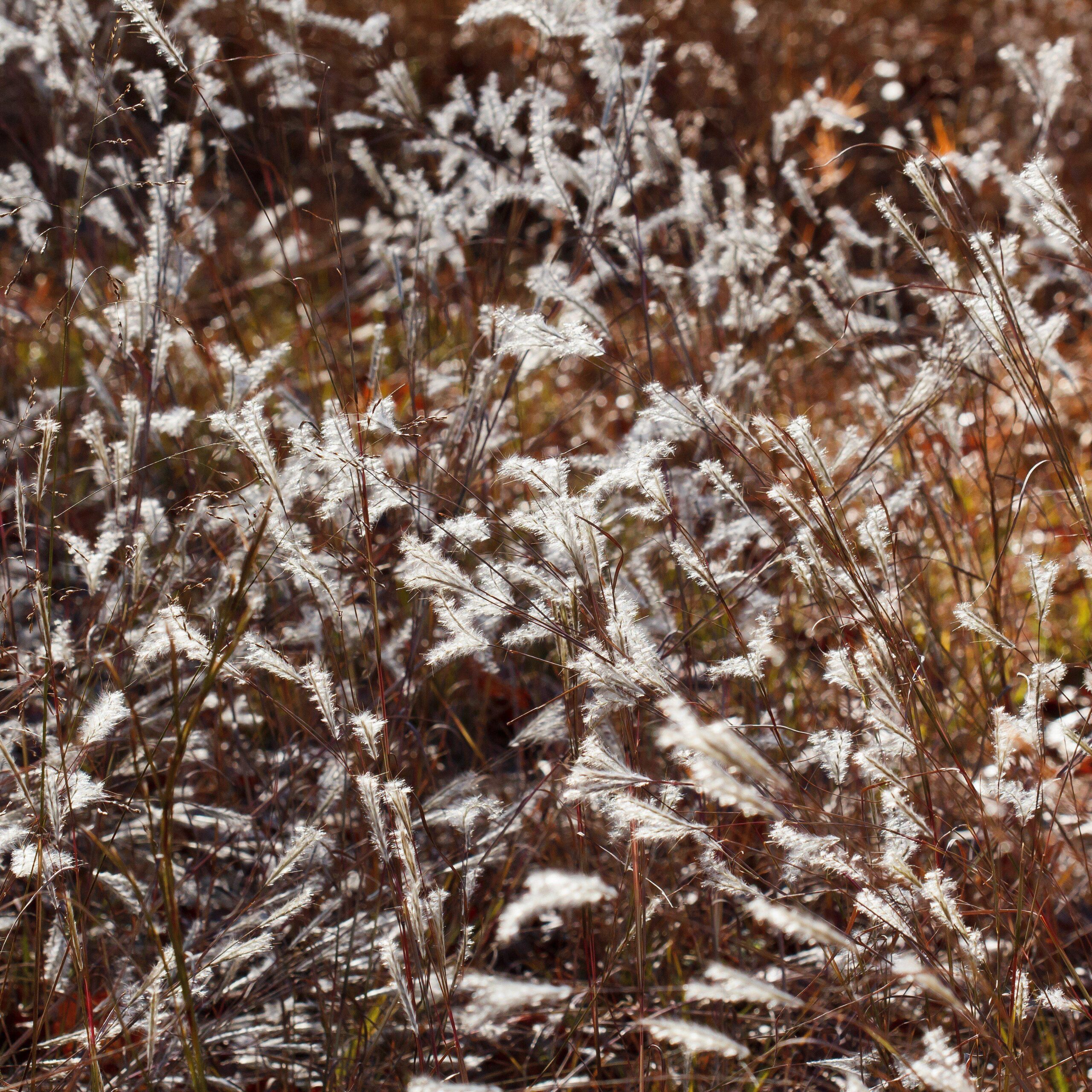 Black Mountain Bluestem is a compact native grass that has refined but sturdy blue-green foliage that develops deep red hues later in summer. The spikelets have tips covered in silvery white hairs that catch the sun bloom in late summer or early fall. Grows best in full sun and moist, loamy well-drained soils. Drought tolerant.