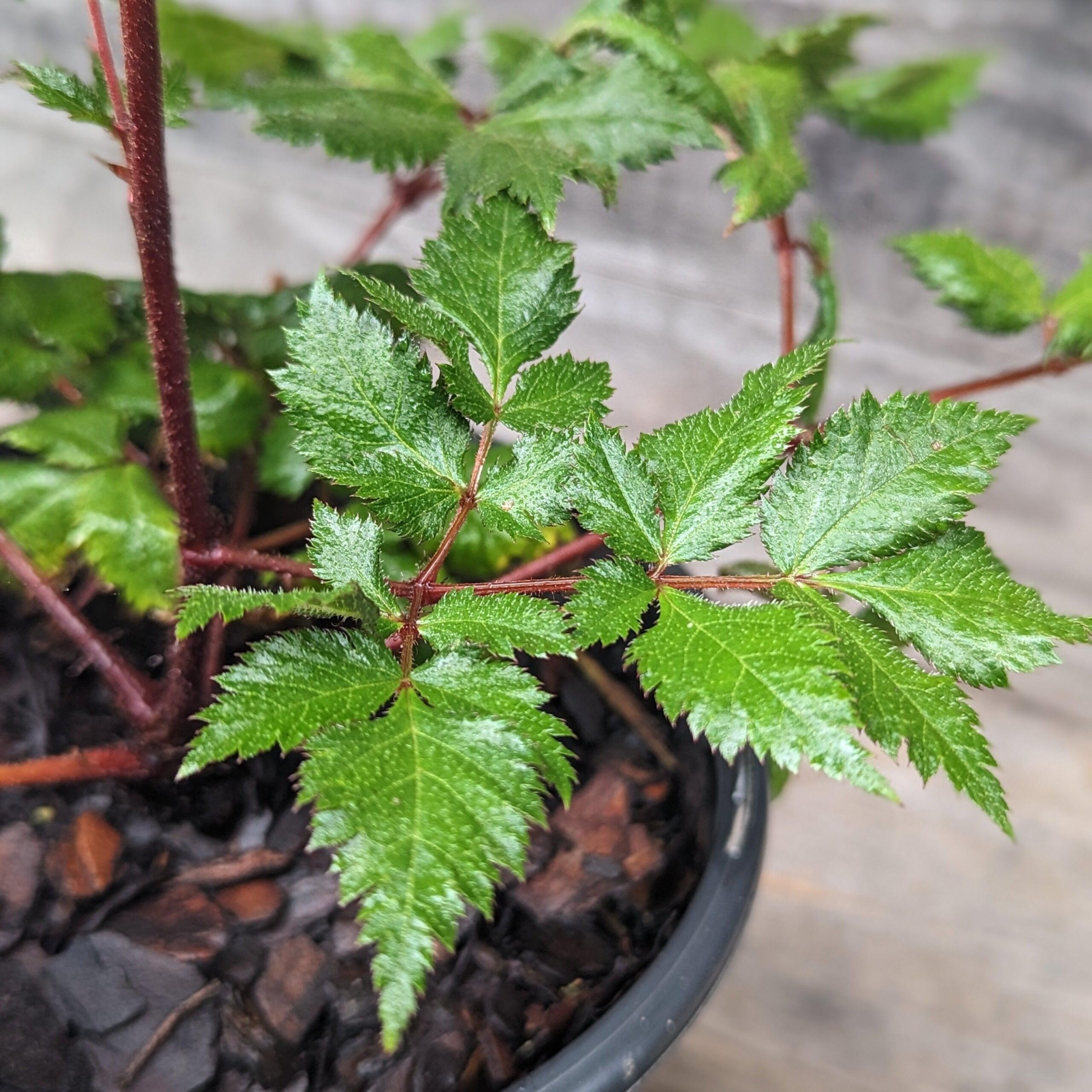Vision in Red Chinese Astilbe is a compact clumping herbaceous perennial with dark green foliage and dark purple stems. Fully packed panicles of dark maroon to deep purplish-red flowers bloom above the leaves in summer. Flowers best in part shade and rich, moist soils. Astilbe are deer and rabbit resistant.