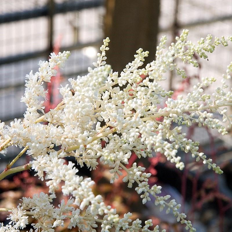 Bridal Veil Astilbe is a mounding herbaceous perennial with vivid green fern-like foliage that emerges with a bronze tinge in spring. Feathery panicles of clear white flowers turn creamy as they age and bloom above the leaves in summer. Flowers best in part shade and rich, moist soils. Astilbe are deer and rabbit resistant.