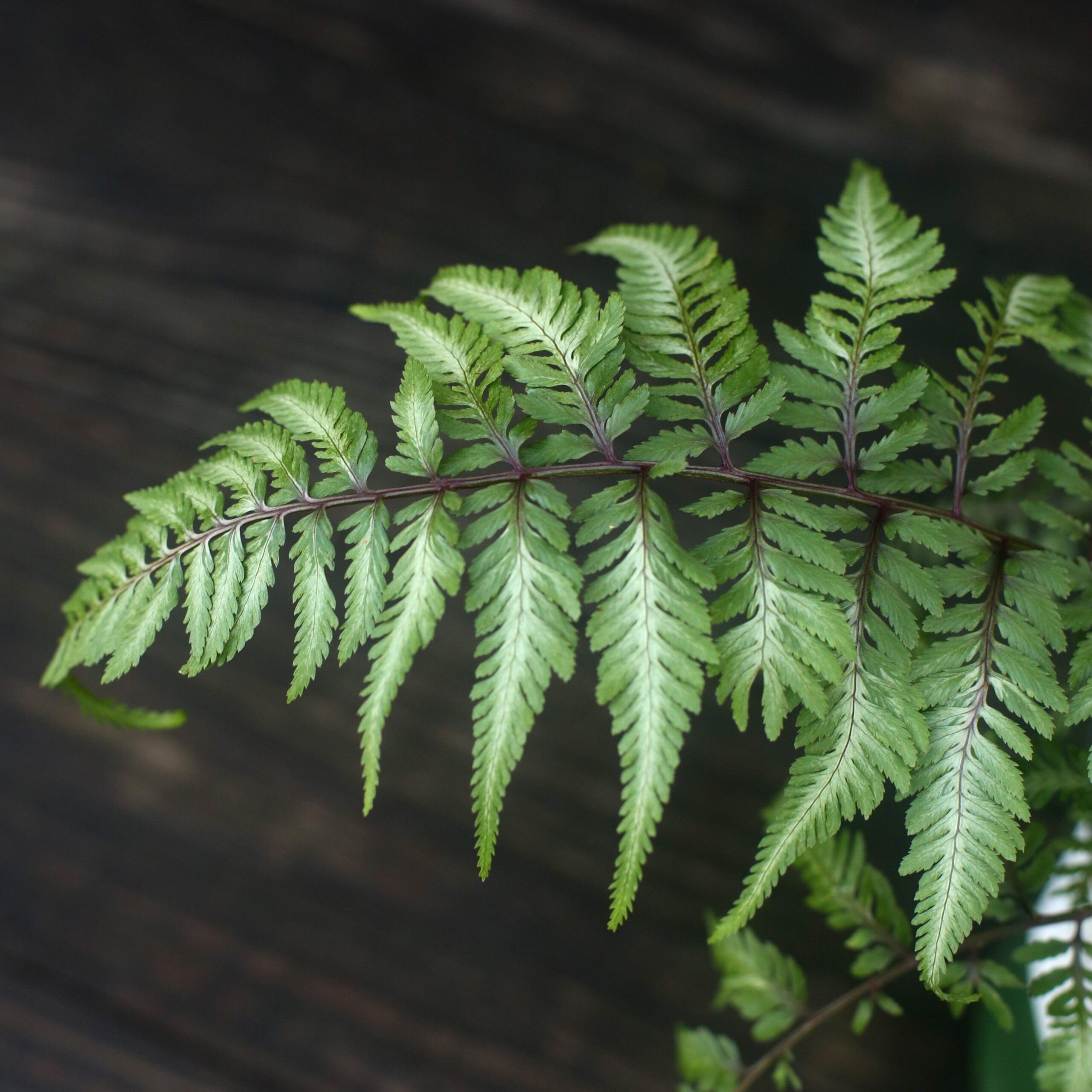 Japanese Painted Fern is a beautiful deciduous fern with a hand-painted appearance. The arching grey-green fronds are highlighted with silver giving it a metallic sheen, and often flushed with burgundy in the center that matches the stems. Best frond color in part shade and rich, moist well-drained soils. Deer resistant.