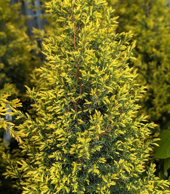 This Juniper is anything but common with a tight, dense, upright, slow growing form that makes it perfect for an incredible number of landscape situations, and superb gold foliage color that really sets it apart. ‘Gold Cone’ only grows about 3-4″ per year making it ideal for smaller landscape spots or containers making it a great, colorful alternative to Dwarf Alberta Spruce. Its new foliage bursts forth in the spring with bold, bright gold coloration and it retains its color with a minimum of fading throughout the hot summer and following cold winter conditions. Like all Junipers, ‘Gold Cone’ is easy to grow and does best in bright, full sun locations.