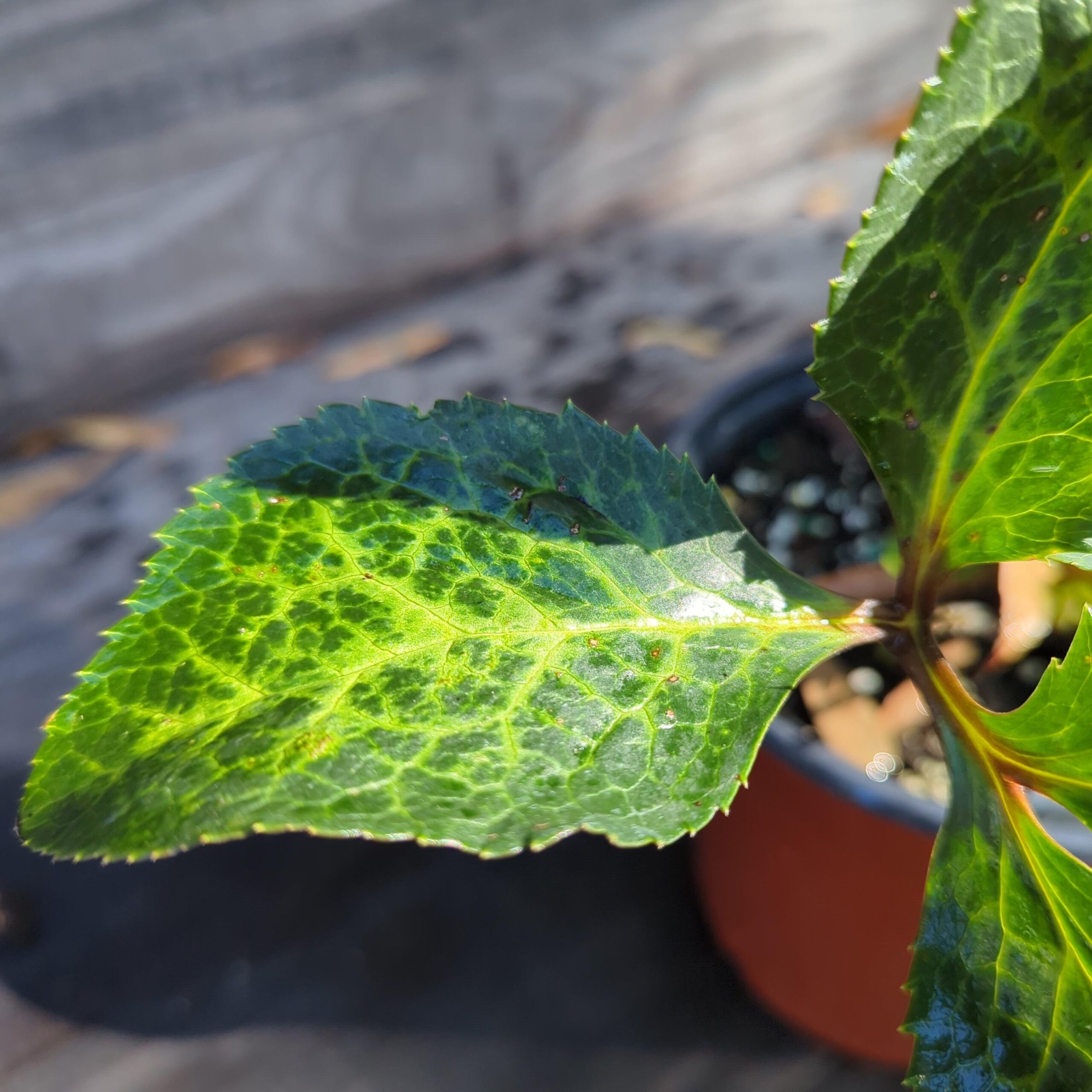 Molly’s White Lenten Rose is a late winter-blooming evergreen perennial with marbled leathery dark green basal foliage that matures with light green veining by summer. Clusters of large nodding greenish-white flowers bloom from late winter into early spring. Best bloom in dappled sun and moist well-drained soils. All parts of the plant are toxic if ingested.