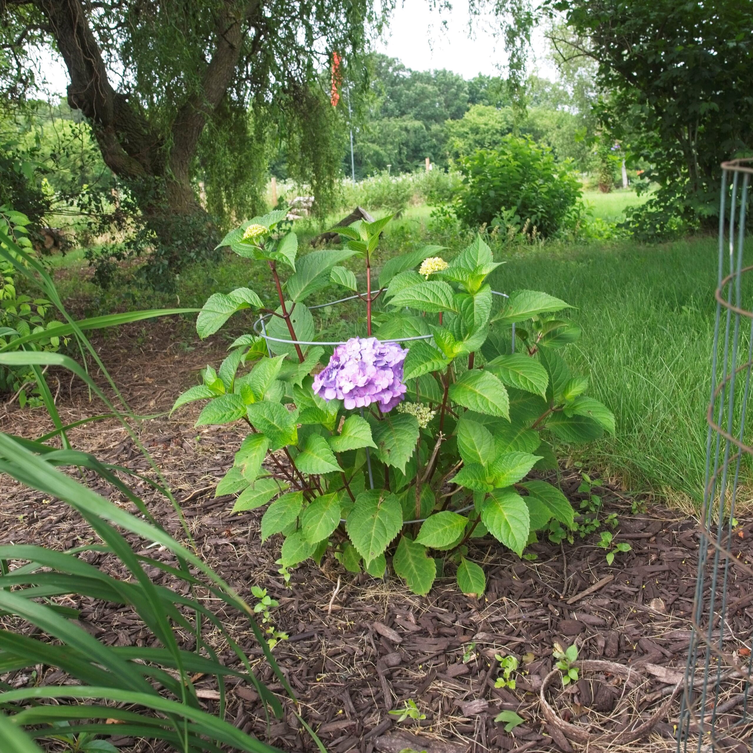 Bloomstruck Hydrangea is a compact deciduous shrub able to bloom on both old and new wood. Its serrated dark green leaves with red veins grow on red-purple stems and turn red-purple in fall. The color of the large panicles of mophead flowers depends on the soil PH – acidic soils produce violet-blue flowers, while alkaline soils produce deep rose flowers. While not fragrant, the flowers attract butterflies and pollinators. Best bloom in partial sun and rich, moist well-drained soils. Bloomstruck is resistant to powdery mildew.