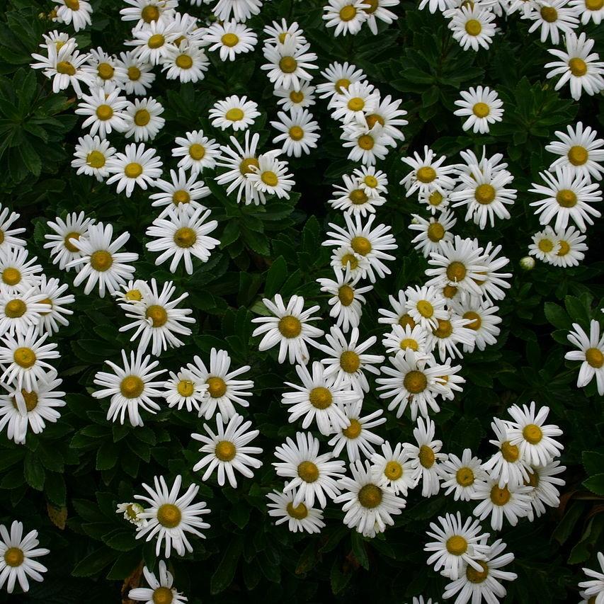 Nippon Daisy is a mounding perennial with glossy, coarsely toothed dark green foliage. The 3” white flowers with green eyes bloom in summer and can experience an additional bloom if deadheaded. Prefers full sun and dry to medium well-drained soil, but protection from afternoon sun in Southern climates.