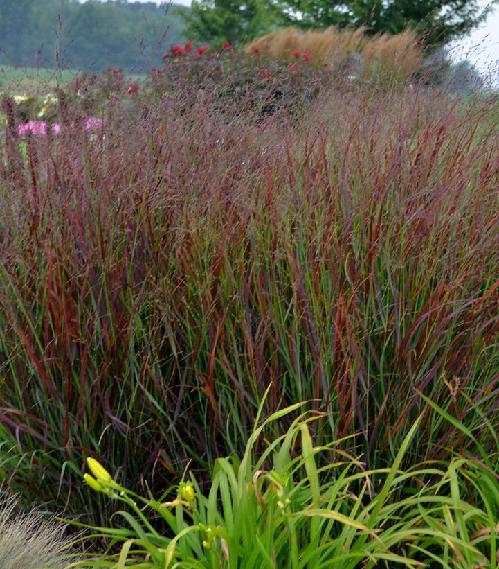 Descriptions: Forms a dense, upright clumpBlue-green leaves turn wine red in early summerPurple flower panicles appear in late summerPetite red grassIdeal for containers.