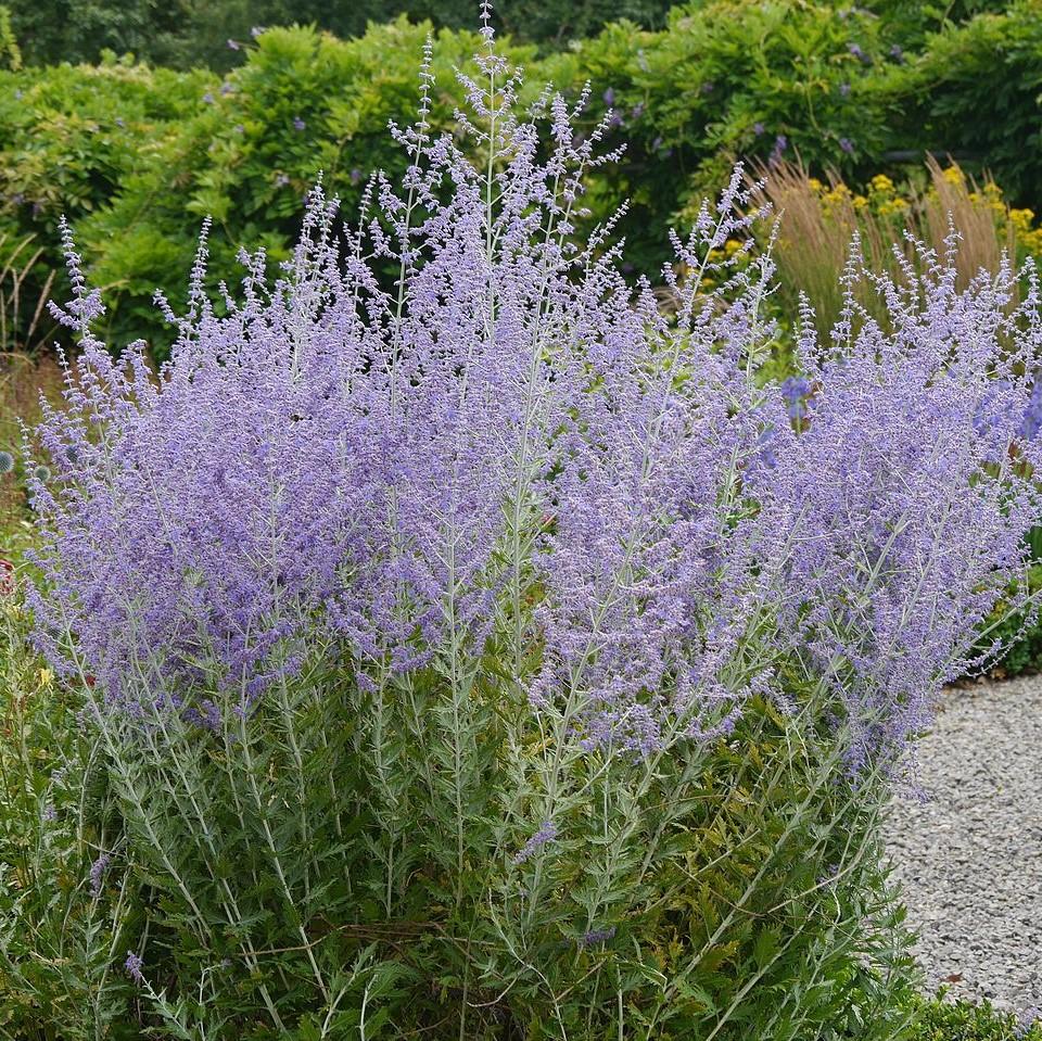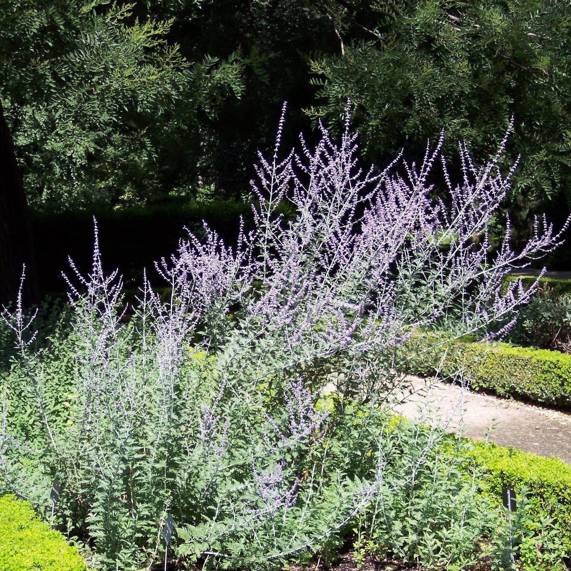 IMAGES: Edwardx, Fulham Palace, London SW6 37, CC BY-SA 4.0,, (2) A. Barra, Perovskia atriplicifolia, CC BY-SA 4.0, (3) Famartin, 2019-04-26 07 50 51 New leaves in spring on a Russian Sage along Tranquility Court in the Franklin Farm section of Oak Hill, Fairfax County, Virginia, CC BY-SA 4.0