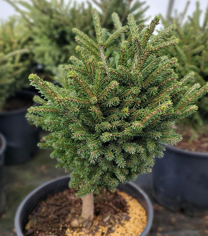 Picea orientalis ‘Bergman’s Gem’ is a charming, small evergreen conifer that matures into a flat globular form, growing 2 to 3 feet tall and wide over its first decade. This vase-shaped plant thrives in full sun but can tolerate some light shade. ‘Bergman’s Gem’ generally does best in cooler climates and may struggle in the heat and humidity of the deep South. When planting in northern regions, it’s advisable to position it in areas shielded from strong winter winds.