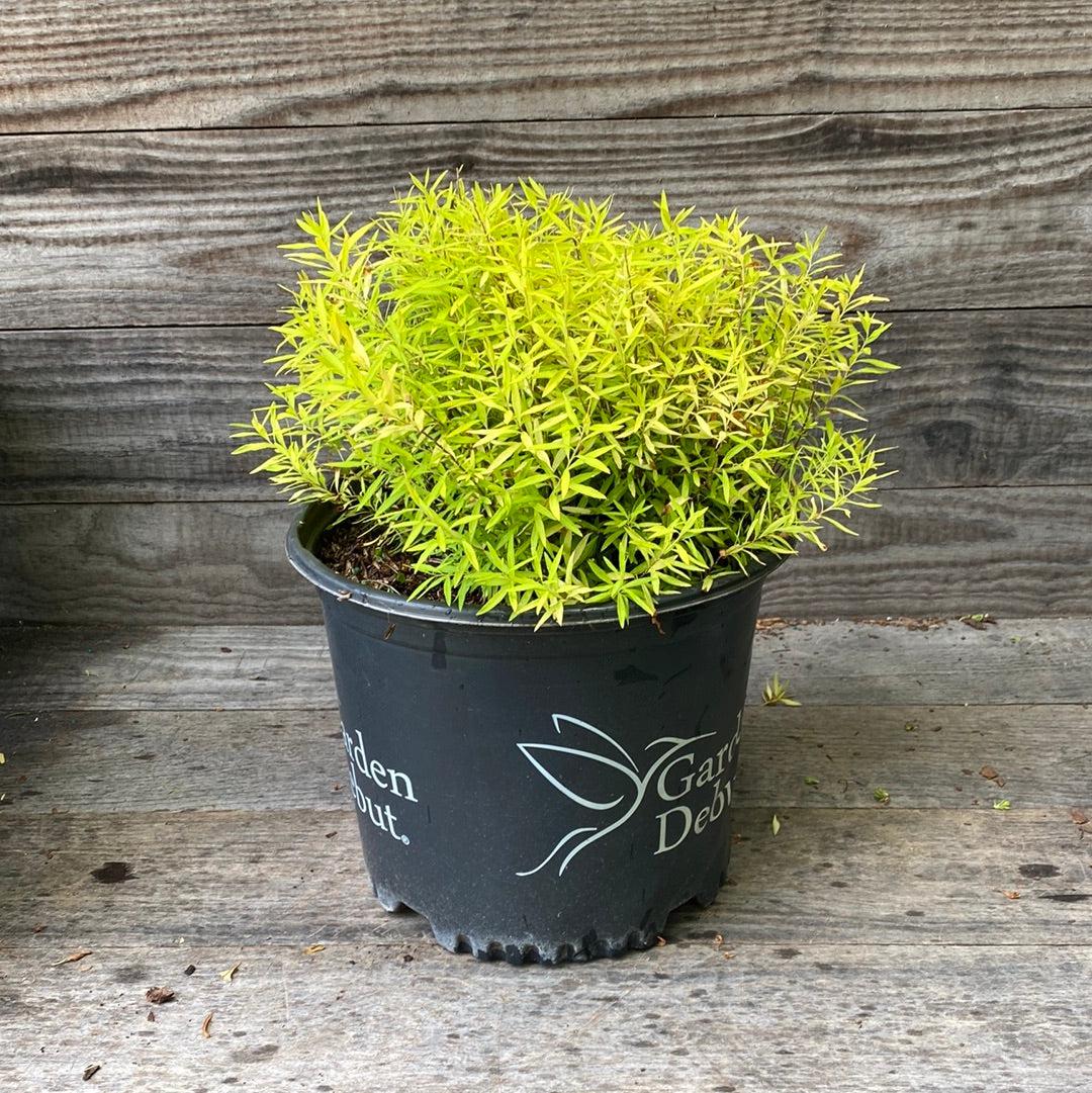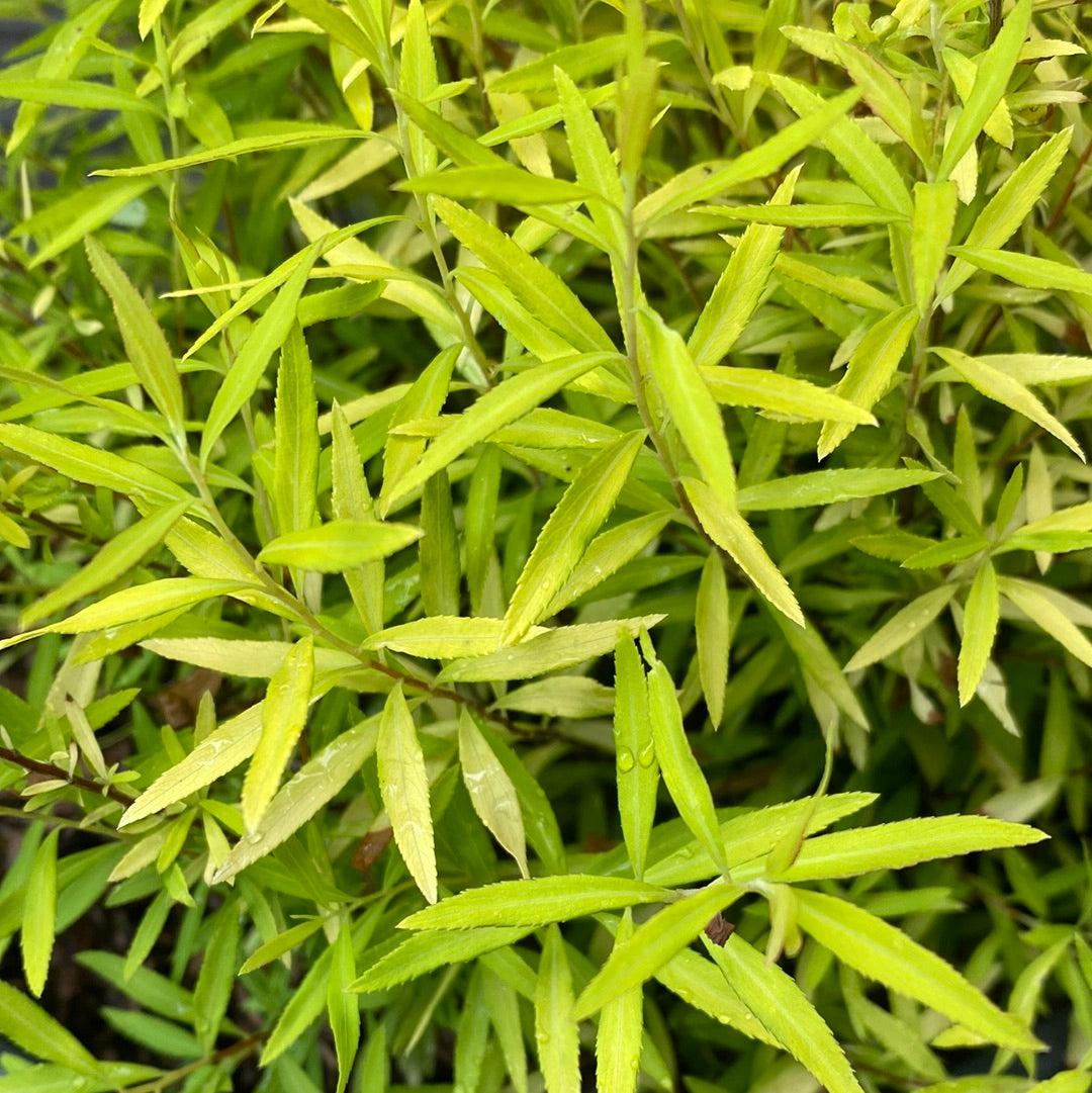 Gold Thread Spirea is a twiggy upright arching deciduous shrub with willow-like leaves that emerge yellow-green and matures to bright green before turning coral orange in fall. Flat-topped clusters of pure white flowers cover the plant in spring. Grows best in full sun and well-drained soils. Removed spent flowers to encourage additional bloom.